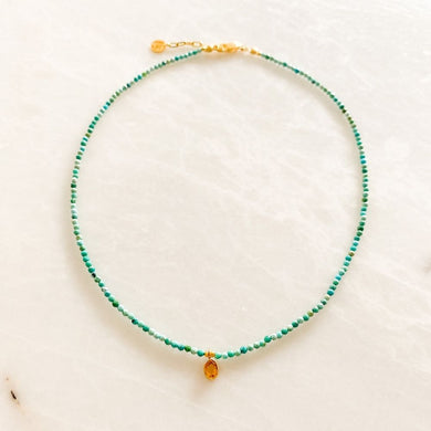 Senna Single Citrine Mini Charm Turquoise Necklace